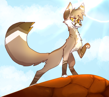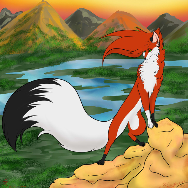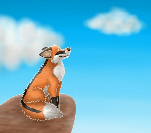 Here is 's prize for hitting my Kiriban!It shows his fox character standing on a rock and enjoying the sun.