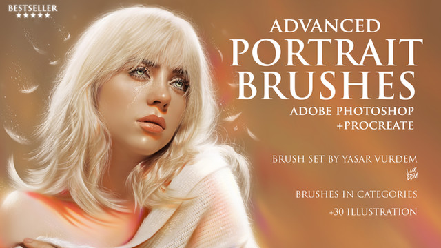 My +15 Special Portrait Brushes. ( PORTRAIT BRUSHES + HAIR BRUSHES + SKIN TEXTURES + FRECKLES BRUSHES + OIL / CHALK BRUSHES)