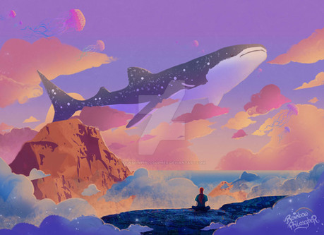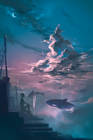 #cloudscape #fantasyillustration #stairs #surrealism #wallpaper #whale