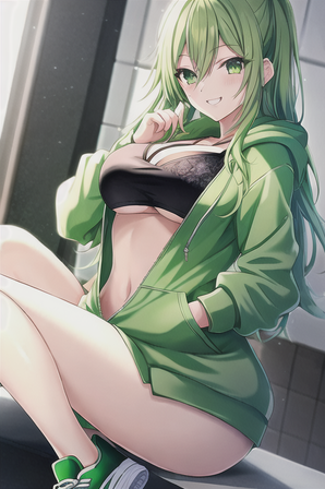 #anime #girl #green #sexy #greenhair #wettshirt