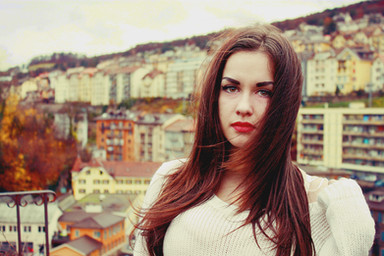 For some reason the word "voluptuous" springs to mind. Β F/1.8 and she's totally in focus while you've blown away the distractions from the background, really making her "pop". Β Even the color tones work exceptionally well. Β This is a well lit beautiful shot of a beautiful model. Β Very well done!