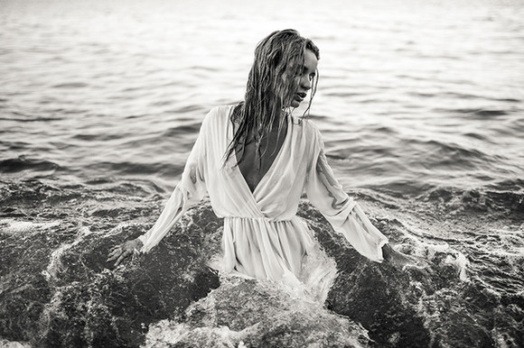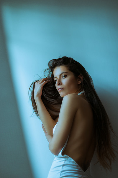 This lovely model's skin looks perfectly silky. An elegant pose, as well.