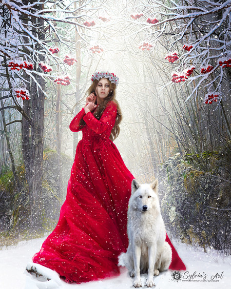 #beuty #dog #forest #pretty #red #snow #white #winter #witch #wolf #woman #wood #blizzard #fantasycreature #samoyed