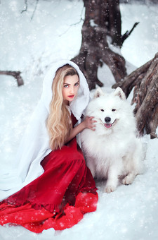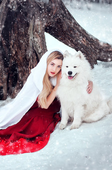 #blizzard #dog #forest #girl #magic #snow #winter #witch #wolf #woman #wood #fantasycreature #samoyed