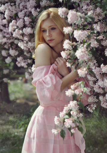 beauty incarnate; statuesque beauty of this lady, colorful dress, blooming tree...all of this creates fairytale atmosphere! 😊