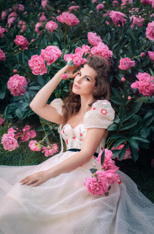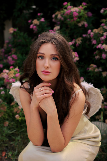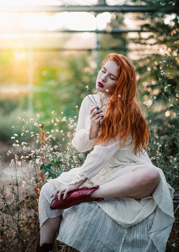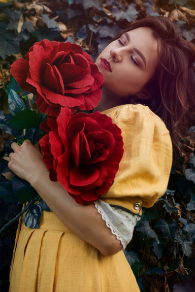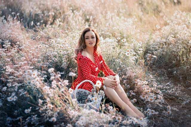 Beautiful picture. The red in the dress really pops with that choice of background and perfect lighting.