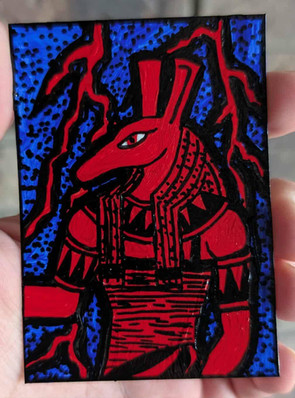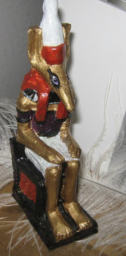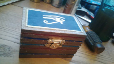 Painted wooden box. Going to be a gift set packaged with "faience" Set statuette, natron, and kapet (kyphi).Related content