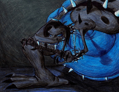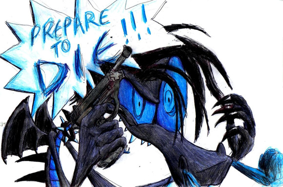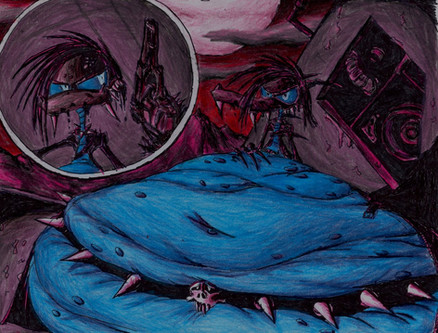 Did the gun a little awkwardly (it looks a bit like a laser gun) but other than that I love this! You used the colors blue and purple perfectly in this one.