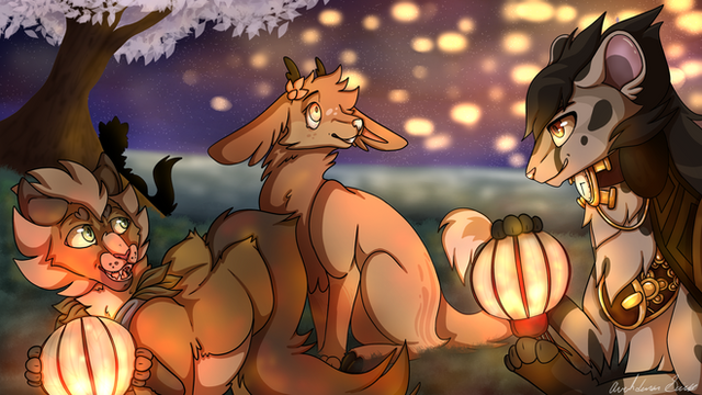 there was already a table and a few cushions, but he hadn't opened the outside storage since he'd moved into the place and they had a heck of a time trying to figure out the combo for the lock. At last, everything began to come together as the sun headed down. They were behind schedule, of course! It seemed to be how they operated x) So, the sun was already on it's way down as they pulled out the lanterns to hang. Dove was used to hanging lanterns, she was a fan apparently, so she made excellent time with Luca trundling back and forth to the bin to pull more out and pass to her. She was hanging the last few she had left, looking over her handy work. "What do you think, Luc? Does it look lit enough?" There was only a grumbly sound from behind that she couldn't quite make out. "Luca?" She turned to see what this weirdo was up to now...