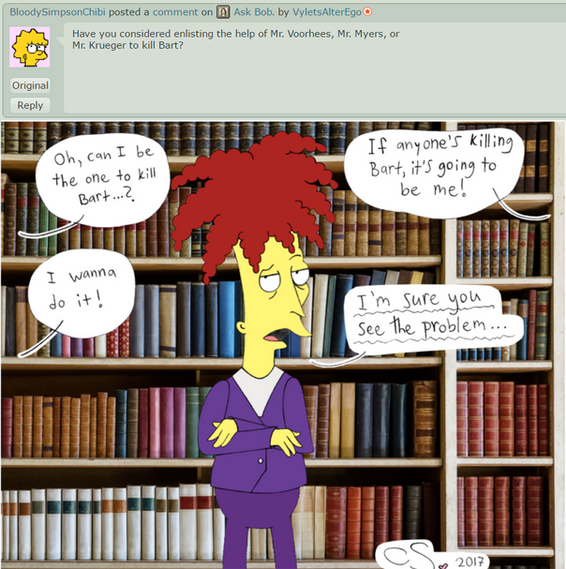 Neat i would like to know what Mel would say to Bob while protecting Bart from him