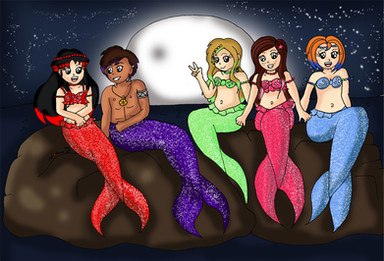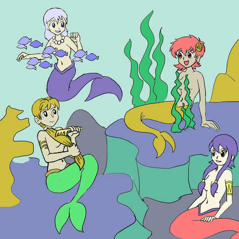 The Mermaid AU, continued: After Serenity gets turned into a mermaid, she worries that she'll never be allowed to see her brother again, but Mokuba assures her that she will. They just need to go see either King Seto or the Sea Witch Pegasus to turn her back into a human. They go to see Seto, but he gets angry that Mokuba was endangering himself by going to the surface. He refuses to turn Serenity into a human again, and swims off. Noah sees the two and asks what happened. The kids explain the story and Noah is intrigued. He's excited about seeing a mermaid turn into a human, but has no magic of his own, and can't turn Serenity back. So the kids head off to see Pegasus. On the way, Mokuba mentions that he likes to sing, and Serenity and Noah listen to Mokuba's song. In my mind, he's singing, "Part of Your World." But it can be any song, really.Meanwhile, sea-witch Pegasus plans on capturing young prince Mokuba and using him as bait for Seto.