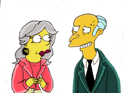 *Barbara's sad because she's lost Mel to Krusty. (Based on my fanfic.)*Is Mel hypnotized? Is that why he doesn't realize what his boss is up to? Krusty is... pretty much singing his plans loud enough for you to hear it...