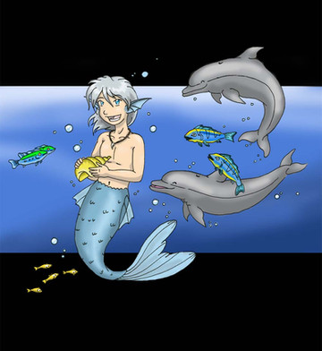 Aw, look at those merboys playing!I was inspired to do a better background for this drawing thanks to the pointers of some helpful commenters. The original was okay, but its background wasn't nearly as good. Also I fixed some things about the face/body proportions. The original can be found in my scraps, but this is the version I want in my main gallery.