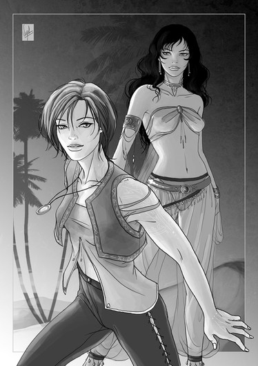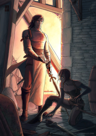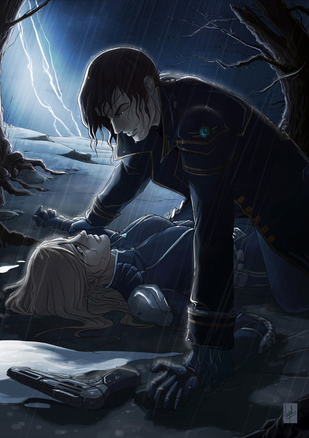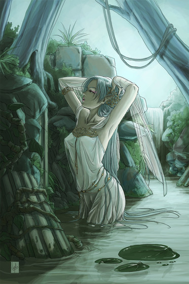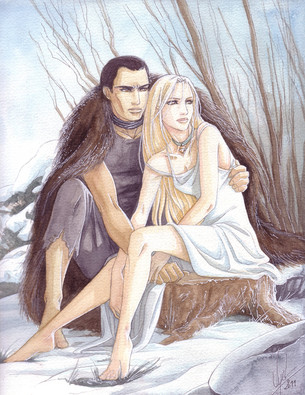 c'est vrai souvent les palettes de couleurs que tu emploie sont froide et celeste, qui vont parfaitement a la pureté elfique de tes oeuvres et celle ci va chercher des couleurs plus terre, chaude, et plus humaine et un style d'un dynamisme différent mais vraiment très jolie, j'admire chaque oeuvre et un jour je vais craquer et voudrai mon propre o.c dessiner par tes doigt de fée, va falloir que je patiente la prochaine "commission art"