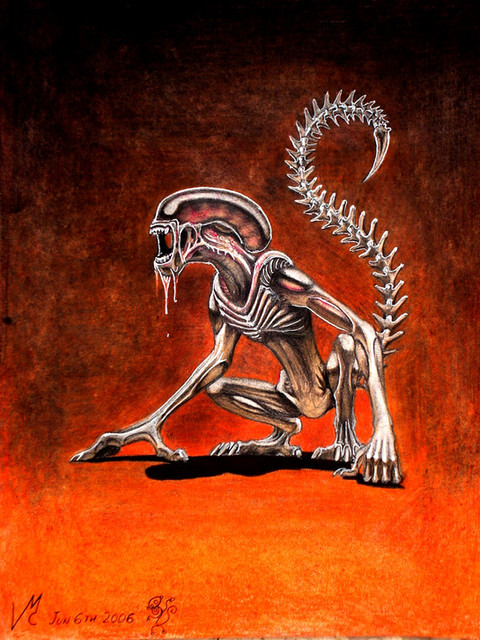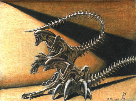 I love the method of combining flesh w/ robotics, esp. w/ the spines, claws, that cybernetic eye and nostrils. Your lighting techniques are just amazing; very realistic and dead-on! I love how you can see some saliva dripping from her top jaws, but I admire the fact that you didn't add too much because she is robotic after all (we wouldn't want poor Luft to rust, now would we?)