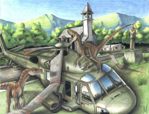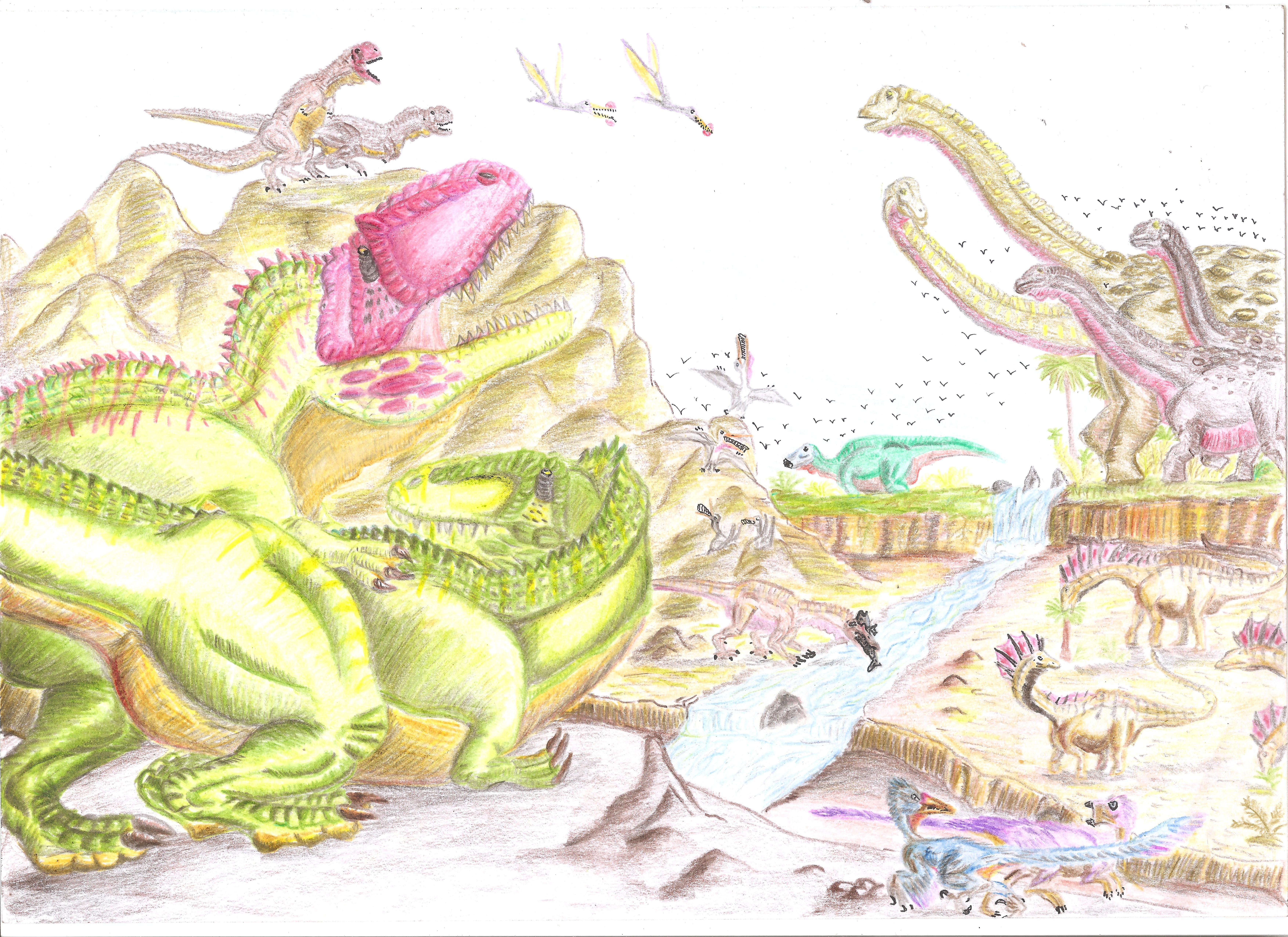 Such beautiful, vibrant coloring!!! I just can't get over how well you can color with colored pencils. I don't think I have that sort of patients. lol And the way you draw your dinosaurs is like it's right off of the JP movies! ^^