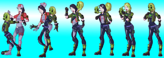 Loving the final one of alien Gwen with the Raven and Starfire suits.