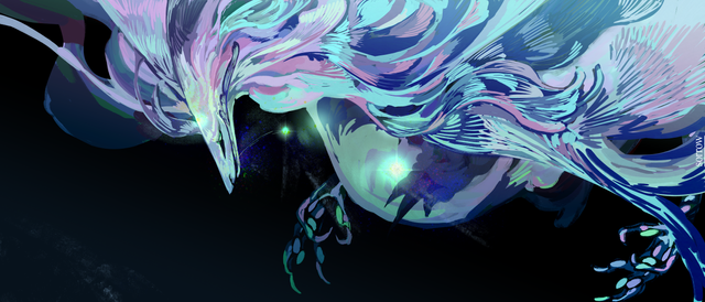 The colours on this are so beautiful! It really does give the feeling like it's burning. Also, those patterns in the bird are so interesting and with the different colours make it look sort of deep and see through.