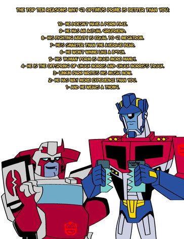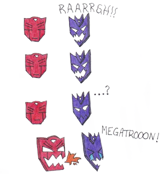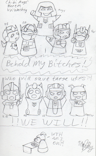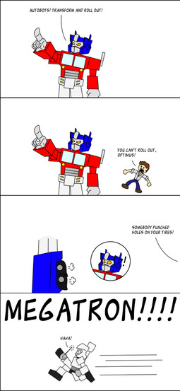 Always I want to be with you, make believe with you, and live in harmony harmony ooh--wait, wrong thing!Apparently, there's a rainbow meme going around that involes someone saying 'Grab my _____ ' and the other character says no, which results in the other character flying off with a rainbow coming out of their butt. I changed the words, obviously, cause Screamer would want to be leader more than he'd want Megatron to hold his hand.