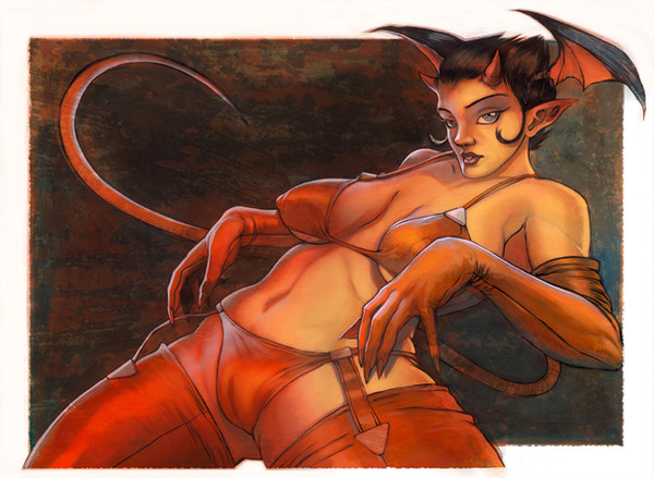 wings...tail...horns. This is a SUCCUBUS, not...i repeat...NOT...a vampire. how in the world do artists mix these 2 VERY different creatures up?