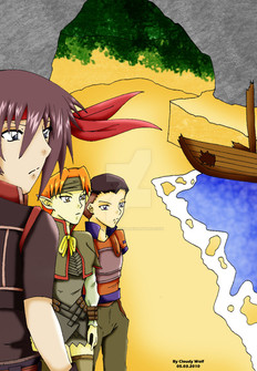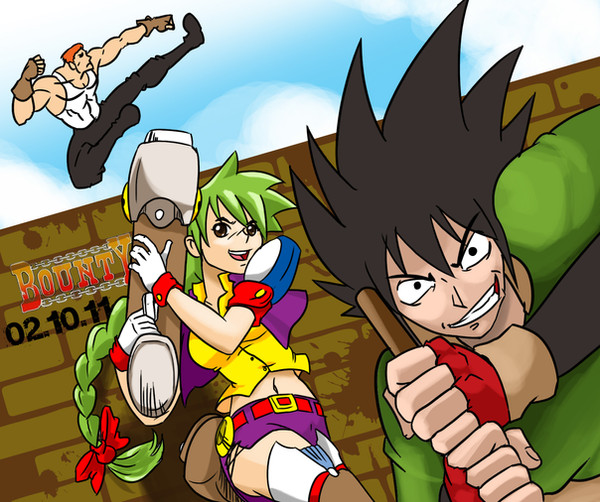 This is for my new comic with I'll probably write down the story later on coz I need to work on it a little more. I have done the 1st page of this one.For the characters.... their names are Erguys(black hair guy), K.O. (red haired guy) and Garlan (Green hair girl). Sorry for the way I made the title... I'll change that later these days. hehe... It's Bounty because it has something to do with bounty hunting...I think.