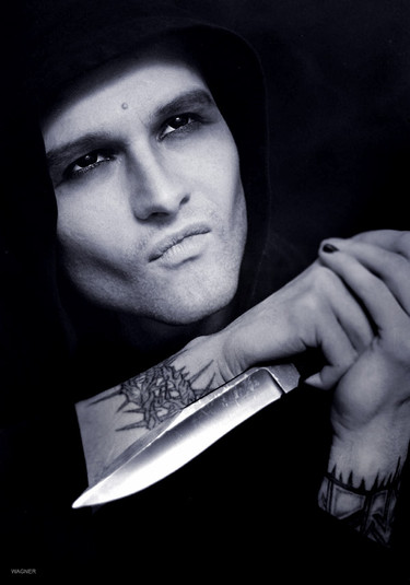 nice pic he/her...it has a scar on one eye which makes me think man but bloody fingertips and hair remind me of women lol killer pic