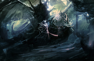 When I first saw it before fullview, it looked kinda like the elephant graveyard in the lion king, with the two giant tentacles as tusks. LOL