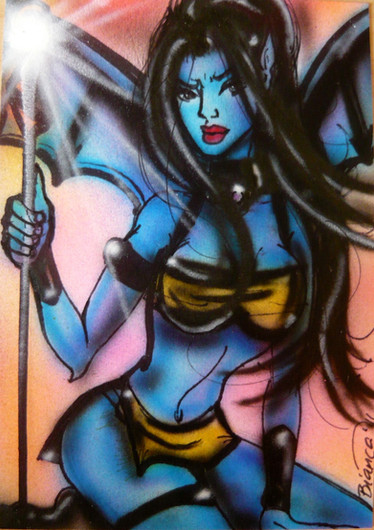 So I finally did a pic of her. She was described like this. Wings and horns... Living in a dry well.