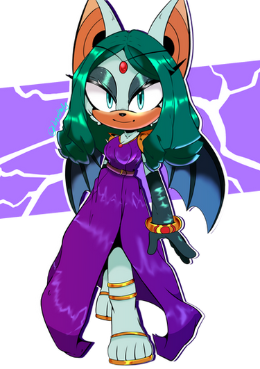 #blue_eyes #cape #crossover #fangs #female #gloves #horn #leotard #wings #my_little_pony #bat_wings #friendship_is_magic #rarity_mlp #white_fur #bat_pony #sonic_the_hedgehog_series #medium_breasts #winking_eye