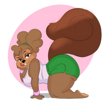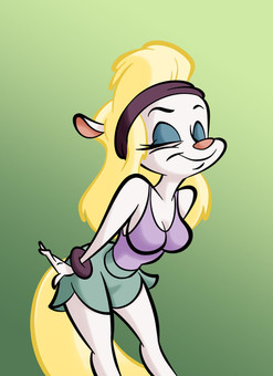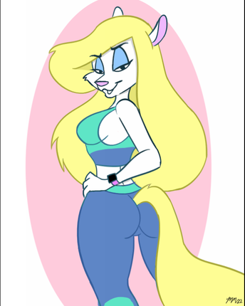 #animaniacs #mink #mustelid #blonde_hair #minerva_mink #big_breasts #fluffy_tail #looking_back #white_fur #exercise_clothing