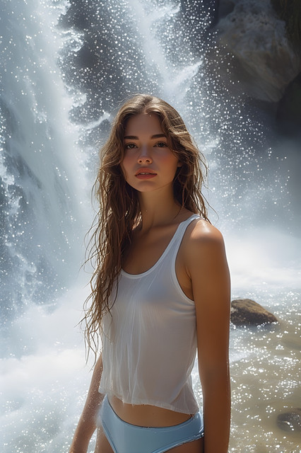 #photography #beauty #digitalart #portrait #body #glamour #naturallight #sexygirl #adult #girl #midriff #photorealistic #waterfall #woman #brunettebeauty #18plus #aigenerated
