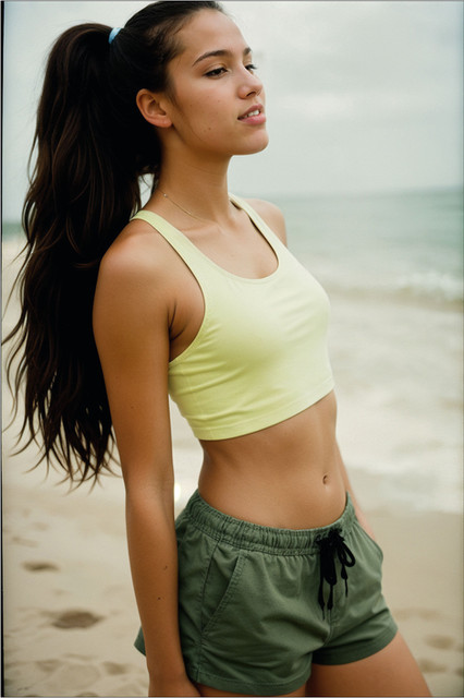 #portrait #photography #beauty #digitalart #beach #photorealistic #naturallight #cutegirl #girl #woman #workoutclothes #fitnessgirl #brunettebeauty #aigenerated