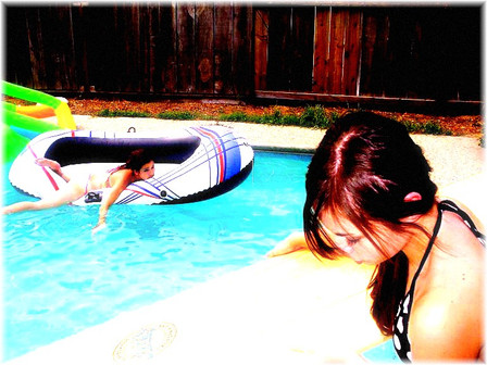 Decided to go with a more artsy title than just the name of the model like I usually do. Most of the time I'd even rather just leave photos untitled and let the photo speak for itself.This time though the title called out to me. Two worlds, you float in one world in the pool with your eyes closed and pretend you are far away... then you realize you are still in your own backyard and that you also need to mow and do some yard work as well. She also looks far more glamorous than the actual location like she belongs in another world