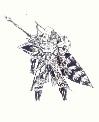 Thank you all...the figure itself was a breeze, it was the shading that was so time consuming. However, I think I did alright...the armor seems to shimmer...a little. And just so you guys know, the ring around his eye is supposed to be a halo-like glow, I just fucked it up.