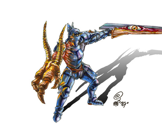 Hee hee, just kidding, babe.... Yeah, that armor does look like a bitch o.o But I just love that sword! And his head is just like, "OMG I WANNA HUG YOU" head ^O^