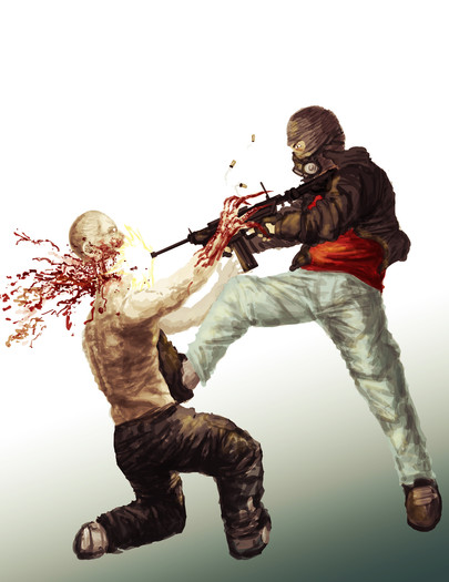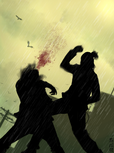 Wow, very good blood splatter! I really love your darker works! And you're right, sometimes the less you see, the more emotion it invokes. :>