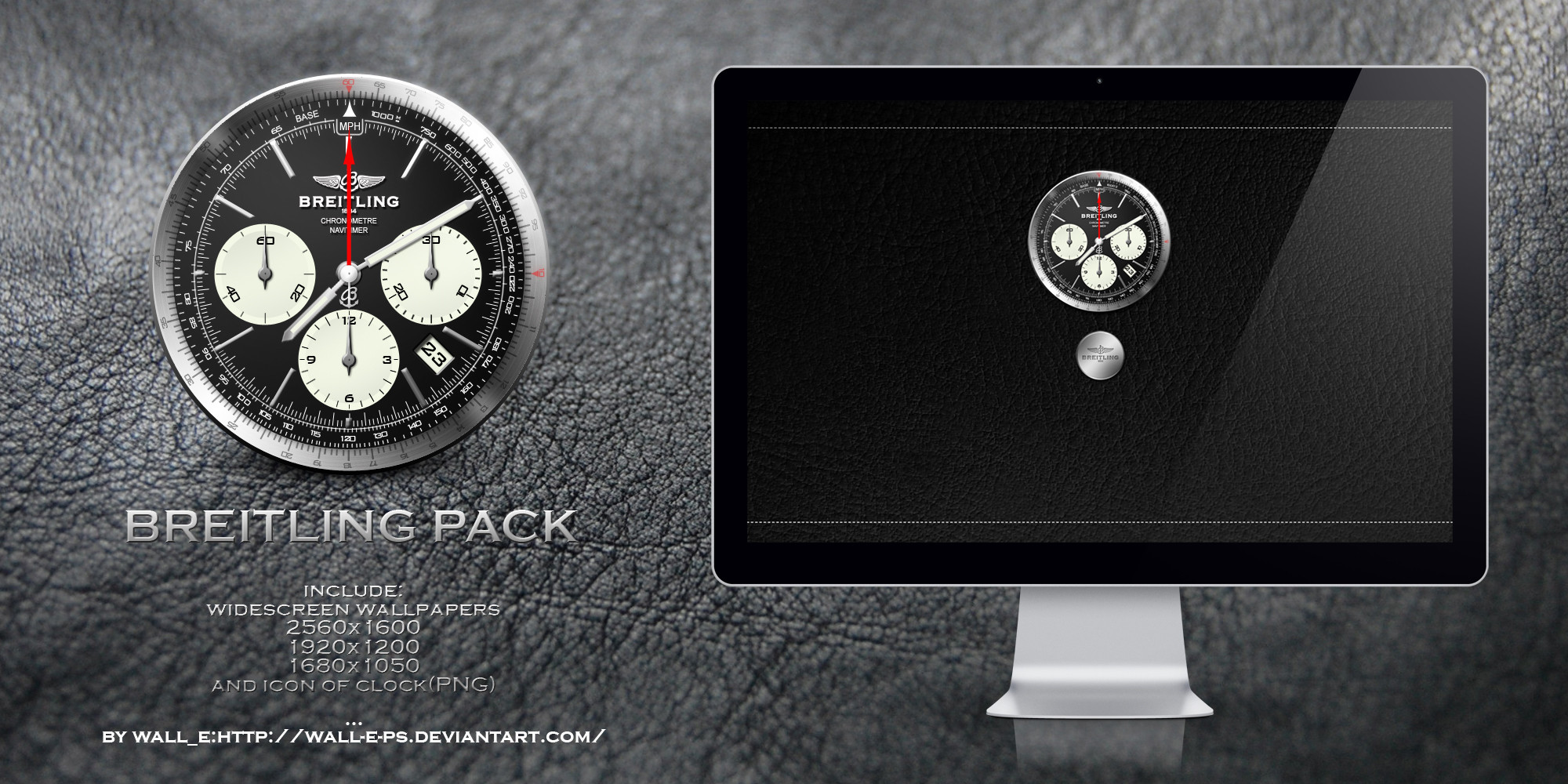 -Wallpaper, and watch are entirely made in Photoshop cs3, "Breitling Pack" include 3 wallpapers, icon of clock which you can use for whatever you want(Do not redistribute files)...