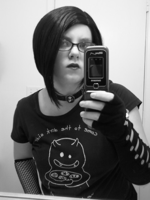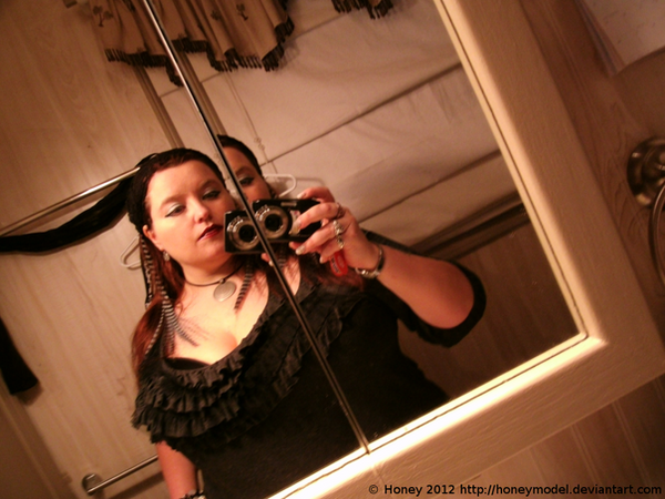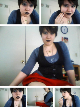 Here's my wife Darcie [link] in one of the outfits I picked out for her to wear on the can't-say-no day for my birthday. She really liked this outfit and doing some make-up. Yeah, I immediately got excited when I saw her like this.Please keep all comments focused on the photo and do not disrespect or criticize the model/my wife. Thanks.