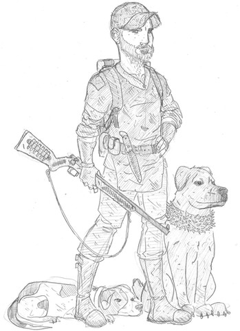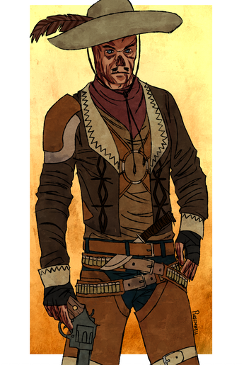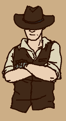 another fallout character...........his nam is Jedediah. aka Jed. cowboy man. hes got his trusty steed, RedBed. cowboy man. killing robots and raiders.