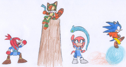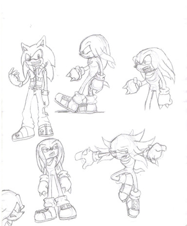 You may recognize some of these from [link] . As I was collecting sketches for that, I realized that I have quite a lot of angsty Sonic pics. XD; So I figured I'd throw them all together into one scrap.The bottom left is the oldest, and was originally meant to be part of an illustration of a scene from chapter 1 of my fic Broken Chaos. Both of which I've lost interest in and will probably never finish. The other three are a lot more recent and were all made about the same time.