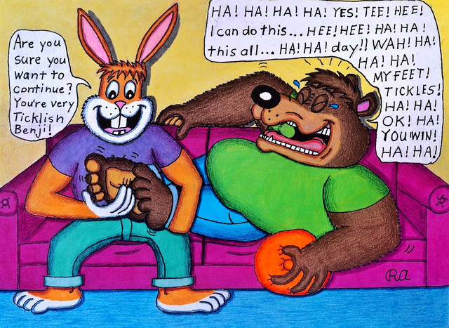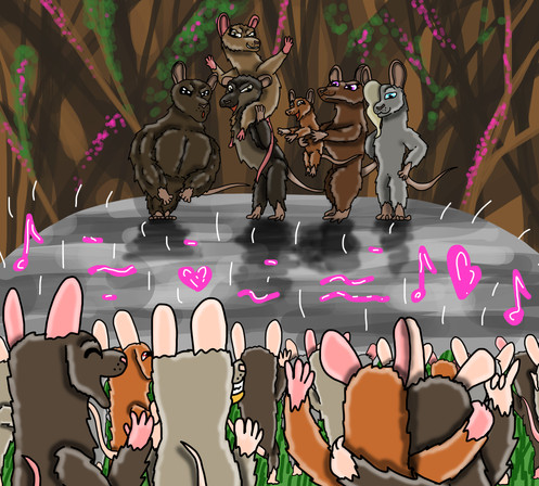 The male rats are trying to impress the girls by making a rat pyramid, but a bad rat is tickling the feet of one of the guys so he could collapse the pyramid! 8DThis is the oldest tickle drawing I ever made way back in 2008.