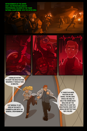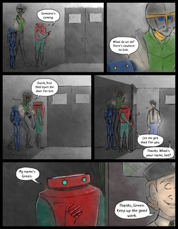 HN: This is when the page every two weeks schedule begins. When I was colouring the pages, I wanted to use what I heard as a 'limited colour palet.' I never really understood what it meant on a deep level so I ended up only using a specific selection of hues, mixing them up to form other colours.This is the gallery for the Chapter.