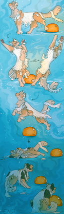"How about we pick a dare for some of our acrobatic folk out there? I want to see if anybody can do a flip. It can be forwards if you like, but I think a backflip would be super cool. The sand here should help a bit if you fall, but please don't try unless you've got some practice under your paws. We don't need any broken bones."