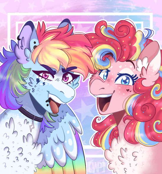 my half of a trade with renhanaofficial !!so so sorry this took so long, it's been a busy month and I've been spending a lot of time working on drawing humans, bUt i finished this this morning and im really proud of it! i really hope i portrayed these two well, they seem to have a really nice dynamic!!