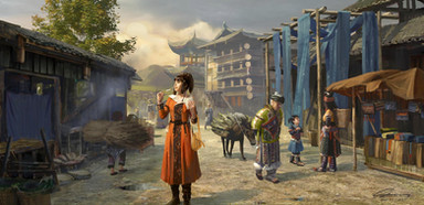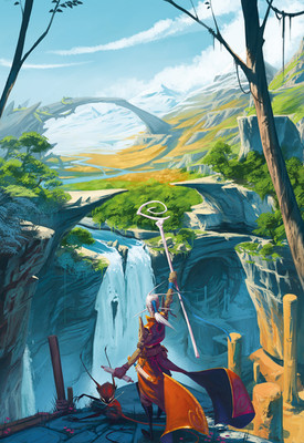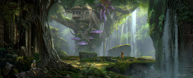 The scenery is amazing. I like the perspective and how the characters walk towards the dragon. Wonderful job. Well done!