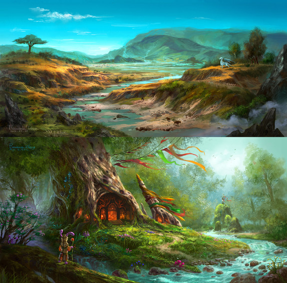 This is an incredible piece. The concept is astoundingly deep, and the presentation is superb. You created a landscape so serene, beautiful and peaceful, yet with the threat of imminent violence lurking over it. You put details in all the right places and the shading and color choices you implemented are wonderful. This is true art.