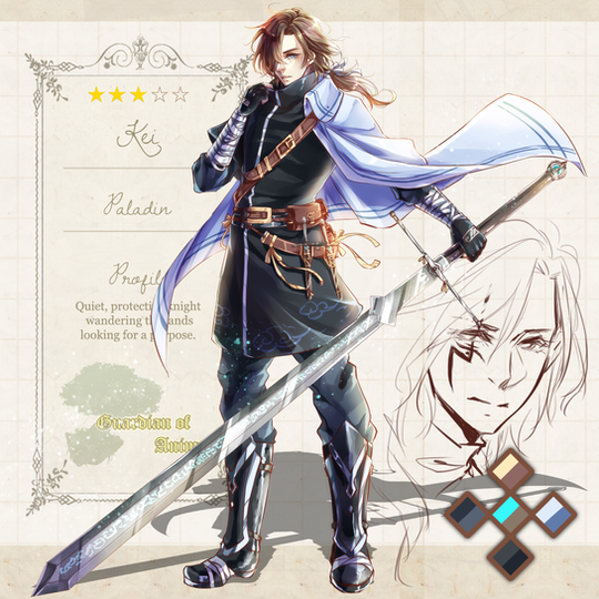 Hi, here is a old drawing I just managed to finish today. He is Rave from our group ! I love him, and he is so fun to RP ahah, I hope to make more of him later, if only I had time orz I think it's not a mystery anymore that I love drawing designs and armors. The rest of the description will be only in French, since it's for my RP group!