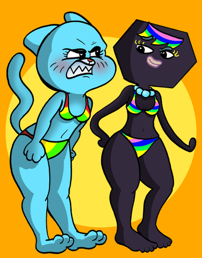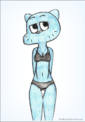 Being scantily clad on a beach surrounded by countless males all secretly wishing to her their seed, i can see why Nicole's embarrassed. While Gumball's beer gut clearly does show that he has inherited some traits from his dad.