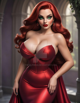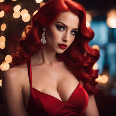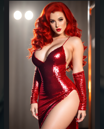#dress #digitalart #photography #beauty #glamour #redhair #makeup #jessicarabbit #ai #cleavage #pinup #popculture #redhaired #redhead #sequins #sultry #aiart #aipinup #aiglamour