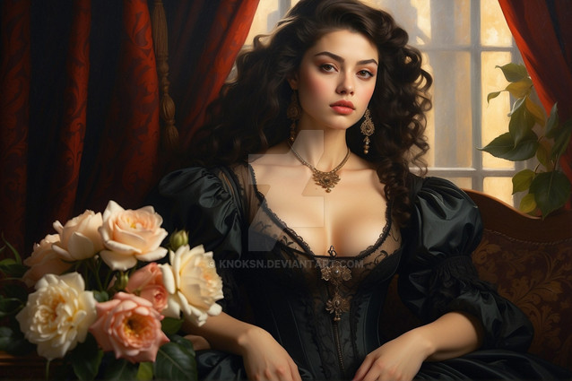 #beauty #digitalart #portrait #photography #fantasyart #digitalpainting #fantasycharacter #dress #gothic #ai #cleavage #dantegabrielrossetti #preraphaelite #laurelwreath #aiart
